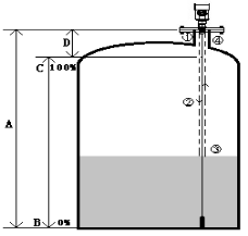 ⑦ A:量程 B:低位 C:满位 D:盲区