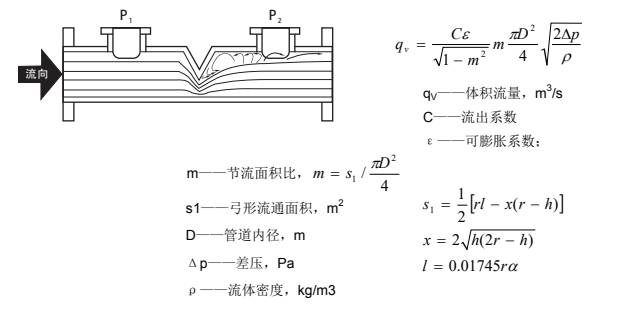 楔形流量计同其它差压流量仪表一样,其理论基于封闭管道中能量相互转化的伯努利定理和流体流动连续性定律:差压与流量是一个开方关系,通过测量差压,就可以测量出管道流体流量的大小。
